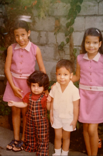 Mi hermano Andrés y el Idiota Inútil que escribe estas palabras (el “mechudito que completa el cuadro”), conocimos a Sandra, la más alta en la imagen, en unas vacaciones de fin de año en las que estuvo varios días hospedada en nuestra casa del “city” el barrio Ciudad Jardín Norte, en Bogotá. Recuerdo su ternura, su espontaneidad, respeto y paciencia con un par de “bellacos” que desde el principio dieron señas de atorombolamiento. Aún sentimos por ella un cariño profundo. Mis hermanos Alejo y Lili eran muy pequeños, no creo que la recuerden.