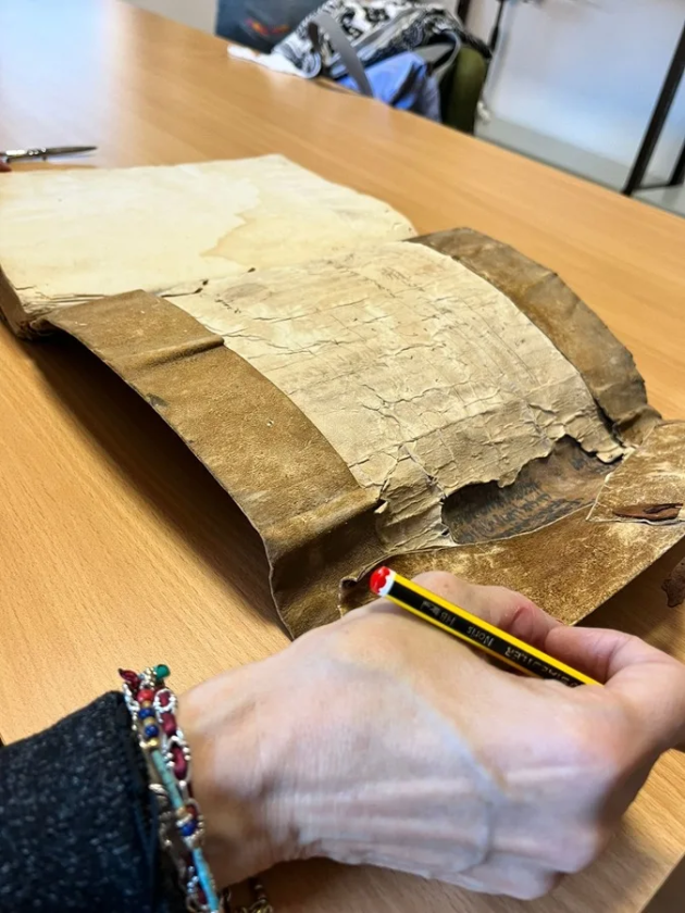 El archivero advirtió que, bajo el papel blanco que reforzaba la parte interna de la encuadernación, asomaban caracteres hebreos, por lo que avisó al director del Archivo, Jesús Merino, y se activó el protocolo de conservación.